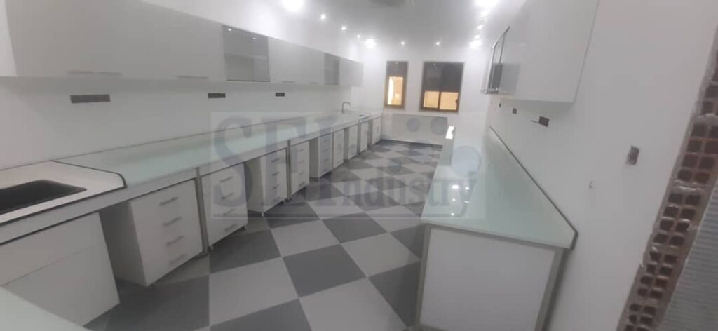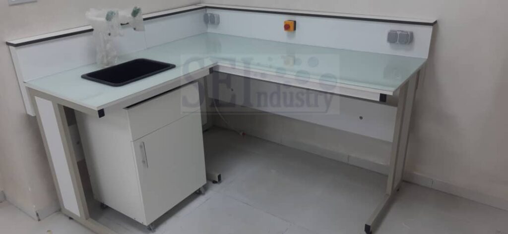 Paillasse murale humide et sèche avec meuble sous paillasse et meuble mural